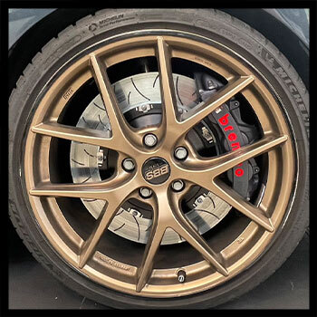 前 GT B-M 一體成型對向六活塞煞車組 搭配 380x34 浮動式雙片煞車盤 - VW Golf 8R